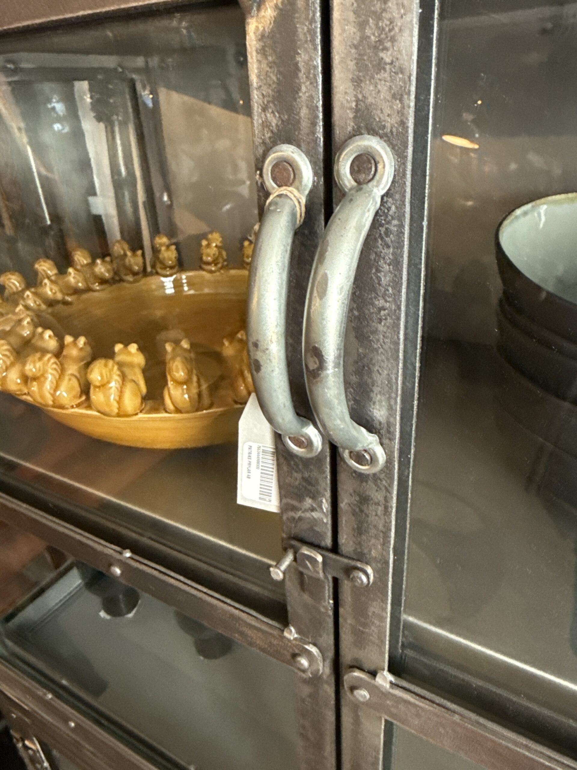 Glaset i skåpet är vanligt genomskinligt glas, det som speglas på bilderna är bara det som står framför skåpet.
