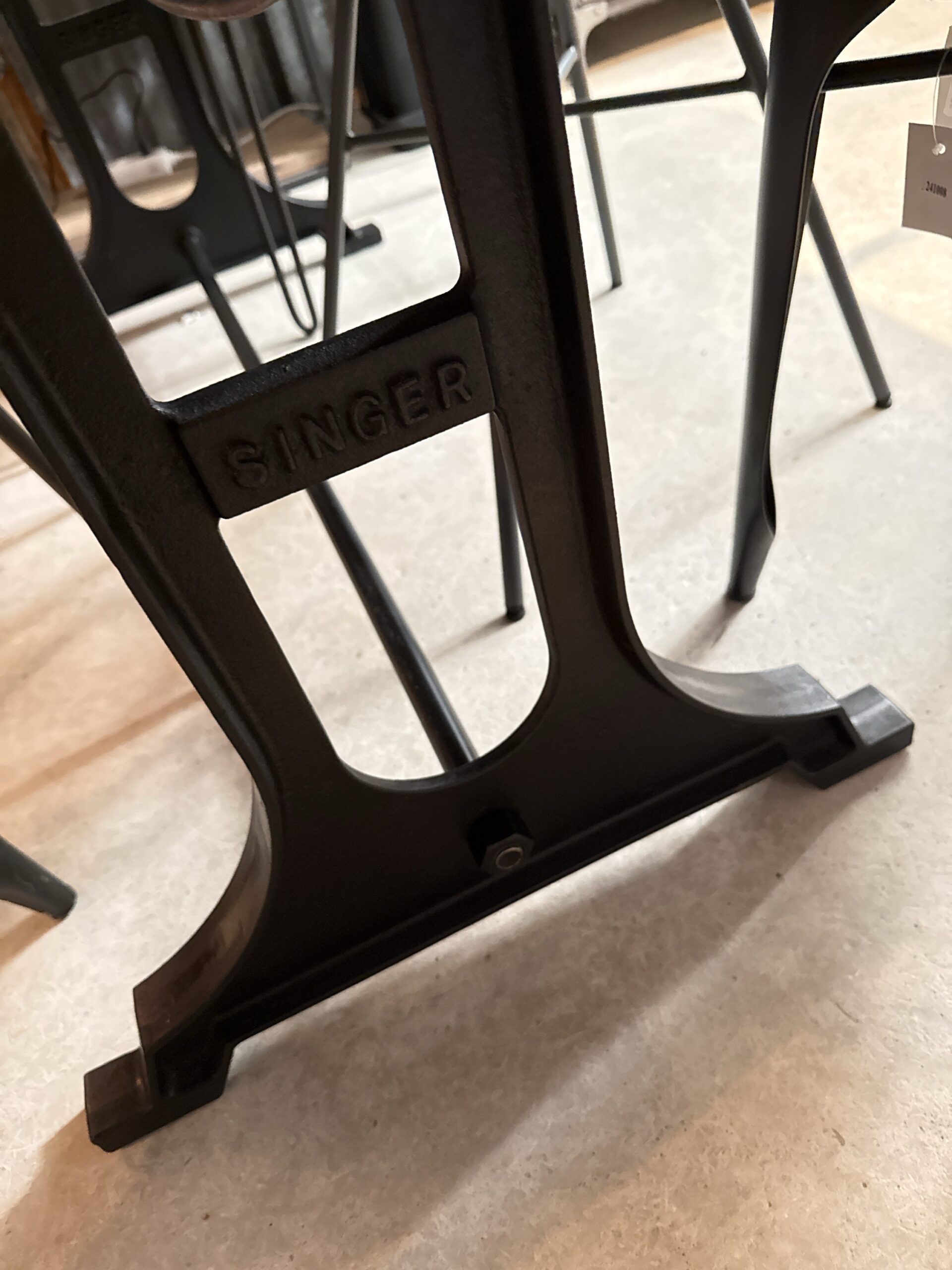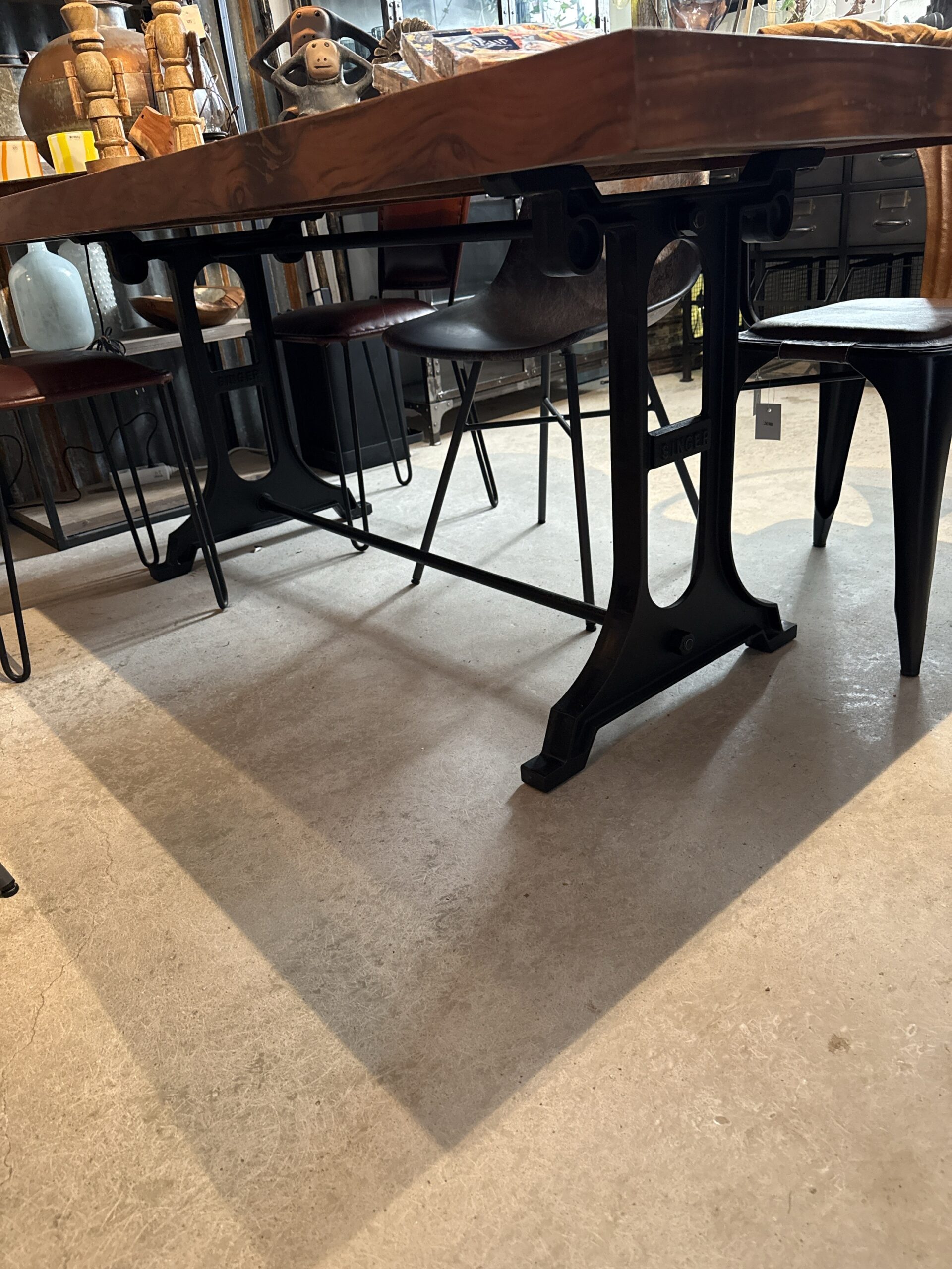Underredet av gjutjärn som ger en solid och pålitlig bas för bordet samtidigt som det lägger till en industriell touch till designen. Underredet är dessutom mycket praktiskt eftersom benen sitter mitt under skivan, något som gör att man aldrig störs av bordsbenen.