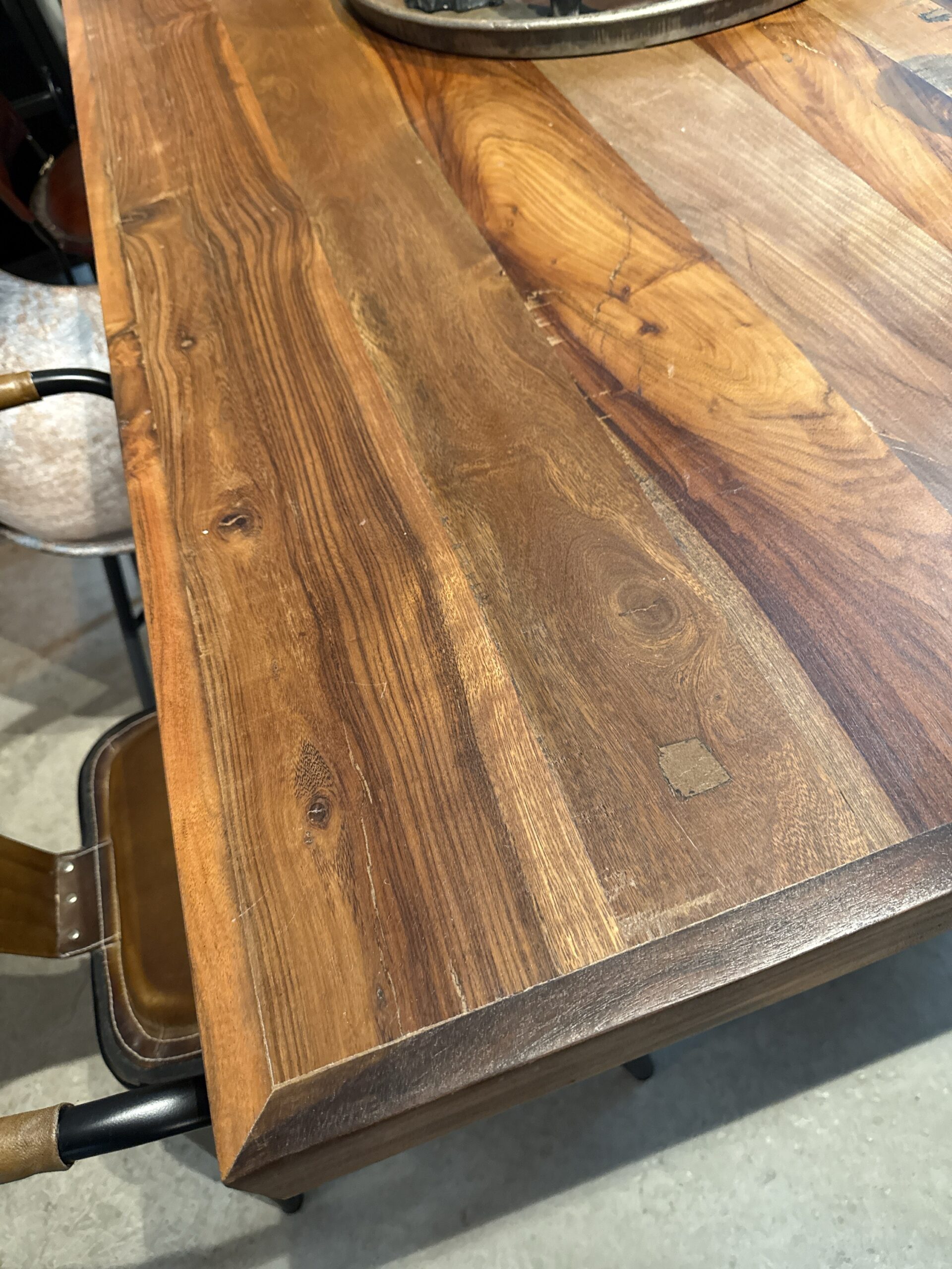 Återvunnet trä är inte bara vackert utan också lätt att underhålla. Med enkel behandling bevarar man bordets naturliga skönhet, och träet blir bara vackrare med tiden när det får utveckla sin patina