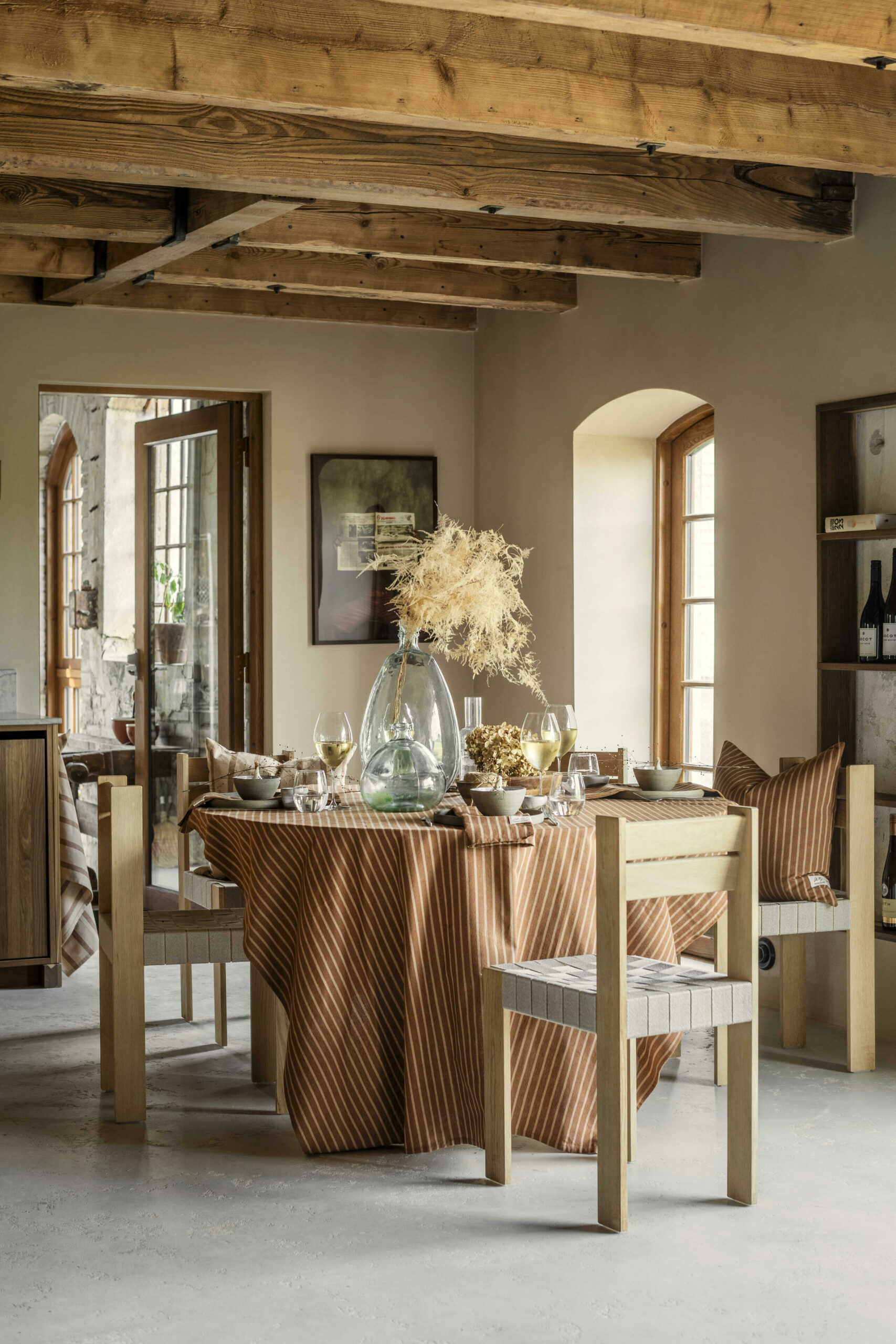 För Gustav är köket husets hjärta och man uppskattar alltid maten mer vid ett trevligt dukat bord. Gustav brinner för återvinning och hela kökssortimentet är därför tillverkat i återvunnen bomull.